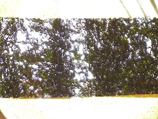 まず、海苔そのものの質が違う。国産の乾海苔は、画用紙のように殆ど隙間のないシートである。それに対して、韓国海苔は上の写真のように、きめが粗く、隙間だらけで脆い。また、味付けも違う。日本で市販されている味付け海苔は、主に醤油と砂糖、香辛料などで味付けされている(ちなみに、焼き海苔は一般的に味付けされていない)。さて、韓国海苔は何で味付けされているのだろう。貰った韓国海苔の袋には、詳細な原材料名と思われる記載があるのだが、韓国語で書いてあるので残念ながら読めない。
