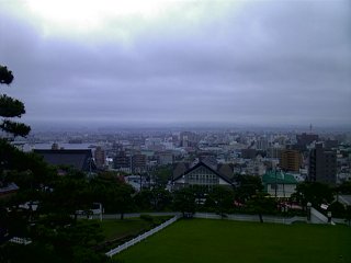 七合目から見下ろした函館市内。この辺で、かなりガスっている。