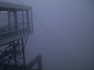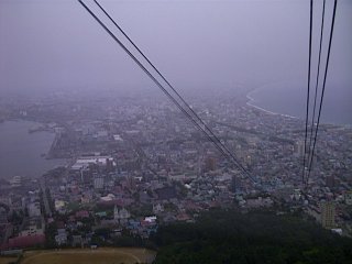 九合目付近にあるロープウェイ乗り場。もうワイヤーが見えないほどだ。景色をみようというどころの天候ではなかった。そして、せっかく登ってきたのに街の様子はまったく見えず、そして640円もする帰りのロープウェイ代だけはしっかり取られた(天候が良ければ、帰りも歩くつもりだった) 結局、一番まともな写真はロープウェイ内から撮ったこれのみ(しく